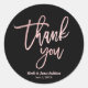 Sticker Rond MERCI Rose Or moderne Écriture Mariage