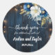 Sticker Rond Merci Rustique Bleu Bois Blanc Floral Mariage