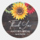 Sticker Rond Merci Rustique Tournesol Bois Fête de Mariée