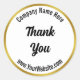 Une ligne de texte d'affichage est en haut pour le nom de la société. Au centre, merci apparaît en écriture noire sur cet autocollant blanc et faux or. En bas, il y a le texte d'affichage que vous pouvez remplacer par votre site Web ou un message personnalisé. La bordure d'or est un rendu d'artiste (pas de feuille). Vous pouvez modifier ou supprimer le texte comme vous le souhaitez.