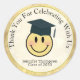 Sticker classique ronde Emoji Merci sourire Visage Graduation Classic. Ajoutez le nom des grades et l'année de la remise des diplômes.