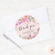 Sticker Rond Merci typographie prairie fleurs sauvages pastel