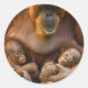 Sticker Rond Mère Orangoutane tenant deux bébés