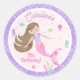 Sticker Rond Mermaid Brown Cheveux Mer Créatures Violet Anniver