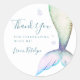 Stickers Merci Favor de la Queue de Sirène Anniversaire. Aquarelle Mermaid Queue dans les tons vert, violet et bleu mer avec de mignons accents bulles.
