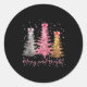Sticker Rond Merry And Bright Santa Christmas Tree Lights Pajam
