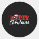 Sticker Rond Merry Christmas Buffalo Plaid Red Santa Family Mat