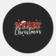 Sticker Rond Merry Christmas Buffalo Plaid Red Santa Family Xma