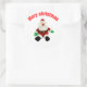Sticker Rond Merry Christmas Gingerbread Man with Santa Hat Vec