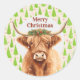 Sticker Rond Merry Christmas Greenery Highland Miniature Cow