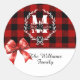 Sticker Rond Merry Christmas Monogram Wreath Buffalo Plaid