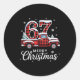 Sticker Rond Merry Christmas Red Plaid Truck Buffalo Family 67