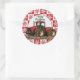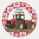 Sticker Rond Merry Christmas Red Tractor Farm Holiday Snowflake