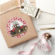 Christmas down on the farm, this festive holiday sticker features a red tractor standing in corn stalks. This design is the perfect finishing touch to wrapping gifts or sending Christmas letters. The red and white snowflake background brings the design a traditional Christmas feel.