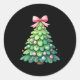 Sticker Rond Merry Christmas Tree With Coquette Bow Xmas Holida