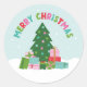 Sticker Rond Merry Christmas Tree with Gifts in Aqua Blue