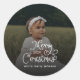 Sticker Rond Merry Christmas Whimsical Script Baby Photo