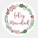 Sticker Rond Merry Christmas Wreath espagnol, Feliz Navidad