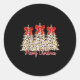 Sticker Rond Merry Christmas Xmas Trees Leopard Coquette Bow Ho
