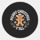 Sticker Rond Merry Christmas Yall Gingerbread Cowboy Howdy West