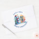 stickers de Noël personnalisées sur le thème du golf sur disque. Joli bonhomme de neige en aquarelle à Santa chapeau à côté d'un panier de golf dans la neige à côté d'un sapin de Noël.