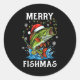 Sticker Rond Merry Fishmas Santa Fishing Lovers Funny Fisherman