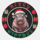 Sticker Rond Merry Hippmas: Moo Deng Christmas Design