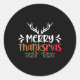 Sticker Rond Merry Thanksmas Christmas Thanksgiving Turkey Sant