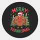 Sticker Rond Merry Thanksmas Turkey Santa Hat Christmas Tree Fa