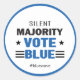 Cet autocollant bleu vote avec une majorité silencieuse audacieuse texte bleu et étoiles, bandes décoratives dans un cercle bleu sur l'arrière - plan blanc, et texte personnalisé "vague bleue" est un bon choix pour express votre message de campagne électorale politique.