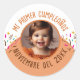 Ces autocollants festifs font la fête parfaite pour les faveurs ou les gardiens pour les célébrations. Personnalisez avec la photo et l'année de l'enfant d'un an. Vous pouvez également modifier les couleurs du texte et de l'arrière - plan.