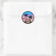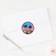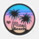 Sticker Rond Miami Beach Bleu et Palmiers roses