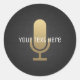 Autocollant de microphone en or moderne personnalisé avec Arrière - plan de texture métallique.