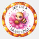 Oui, c'est un autocollant de baby shower pour petite fille. Baby shower de fille d'abeille miel à l'aquarelle mignonne. Adorable abeille bébé assise sur nid d'abeille. Les couleurs sont principalement rose, noir et jaune.
