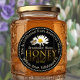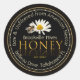 Sticker Rond Miel brut non filtré Or noir avec fleur et abeille