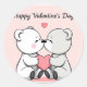 Deux mignons ours de bande dessinée sont assis l'un à côté de l'autre. Ils se font face et s'apprêtent à s'embrasser. Entre eux, il y a un coeur rose. L'arrière - plan est de couleur rose clair. Les mots "Heureuse Sainte-Valentin" sont écrits dans une police décorative en haut de l'image.