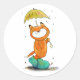 Sticker Rond mignon renard de dessin animé sous la pluie avec p