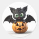 Sticker Rond Mignonne batte d'halloween sur citrouille