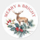 Aquarelles modernes illustration Fruits rouges de Noël courbés de cerfs bruns mignons. Joyeux et brillant texte personnalisable.