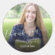 Jolie Classe De Sticker Classic Round Merci Photo Graduation 2024. Photo simple, moderne collant Faire-part Graduate. Le design a MERCI écrit dans une jolie police de caractères avec espace pour ajouter la photo de 2024 diplômé senior et le nom. Customisez-le en changeant le nom du diplômé et de l'année de graduation et la photo. Pour toute personnalisation supplémentaire, n'hésitez pas à me contacter à l'adresse mypaperlove2021@gmail.com