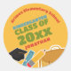 Baguette de fin d'études du jardin d'enfants. Arrière - plan jaune du bus scolaire. La typographie lunaire moderne en plusieurs couleurs. Jolie fête de graduation faveur et garder saké.