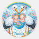 Sticker Rond Mignonnes cigognes portant des bébés jumeaux