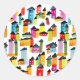 Sticker Rond Mignonnes maisons colorées aquarelle art