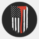 Sticker Rond Mince Red Line Ax American Flag Patriot Pompier