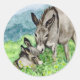 Sticker Rond Miniature Donkey Maman et bébé Aquarelle Art
