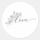 Floral line art beautifully integrates the word "love" with delicate botanical elements. Each design is crafted in elegant continuous black lines, featuring roses, buds, and leaves, with subtle heart accents for added charm.