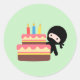 Sticker Rond Minuscule Ninja derrière le gâteau d'anniversaire