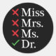 Sticker Rond MISS MME MS DOCTOR drôle DR PhD humour