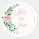Élégant anneau d'or aquarelle rose floral "Save the Date" autocollant. Parfait pour les scellés d'enveloppe.
