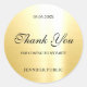 Autocollant rond classique modèle de remerciement manuscrit doré glamour.